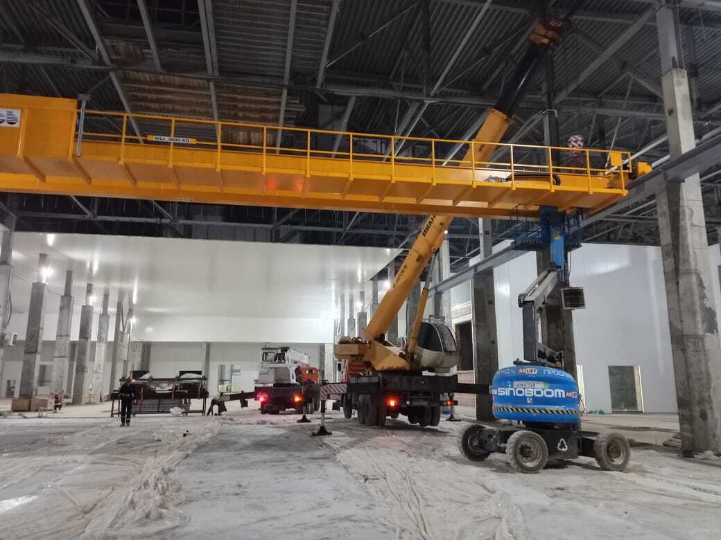 После механической сборки перешли к электрике и настройке. Проверили цепи управления, синхронизацию тележки и моста. Статические испытания провели на номинальной нагрузке 4 тонны, затем увеличили до 110% для проверки тормозов и устойчивости. Динамические тесты включали разгон до максимальной скорости, торможение и маневры по всему пролету. Грузы предоставил заказчик — реальные компоненты линий упаковки. Настроили концевые выключатели, аварийную сигнализацию и защиту от перегрузки.